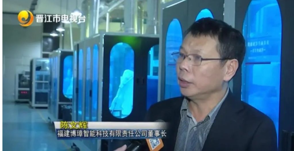 福建博璋智能科技有限责任公司董事长 陈文辉:这条产线,我们总共是用21个机器臂,2个机器臂是在做产线模拟、做轨迹,剩下的19个机器臂做一条产线,也就是等于说我们把画线、定点、鞋底处理剂、鞋面处理剂、鞋面胶都替代,还有压底机,还有鞋楦的回流,用了19个机器臂来替代人工。
