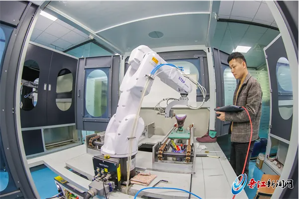 在人工智能不断发展的今天,一个高度智能化的鞋生产车间,究竟能把“做鞋”这件事做到何等极致?昨日,记者走进位于晋江陈埭镇的博璋智能科技生产车间。在这里,几乎所有的生产环节都通过机械手臂、传输设备,以及高适配性的软件体系进行,实现了鞋的智能化集约式绿色生产。